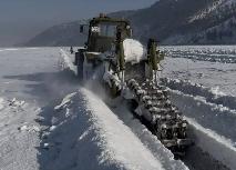 Третья попытка иркутских дорожников обустроить безопасную ледовую дорогу между материком и самым бол...