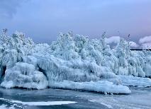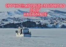 На Байкале возле посёлка Сахюрта вмёрз в лёд во время рейса теплоход