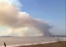 Огромный пожар полыхает на берегу Амурского залива напротив Владивостока