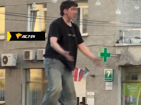 В четверг вечером в Новосибирске на Красном проспекте у площади Ленина неадекват прыгал на крышах припаркованных на платной парковке автомобилей, при этом громко матерясь на виду у всех прохожих.