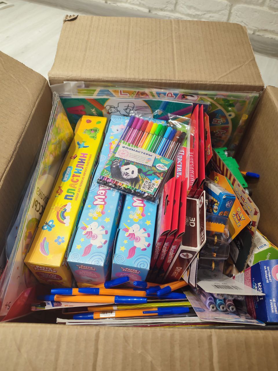 В «коробку храбрости» железнодорожники добавили более ста наборов со сладостями, игрушками, раскрасками, фломастерами, карандашами, пластилином или слаймами.