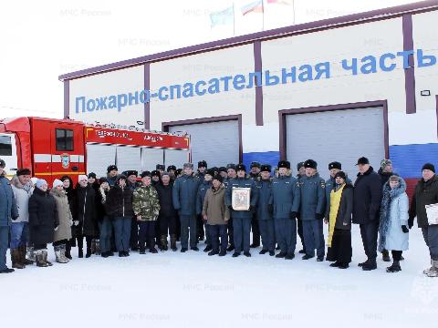 В честь открытия прошли награждения сотрудников за вклад в обеспечение пожарной безопасности, а настоятель Храма Воскресения Христова провел обряд освящения части и техники, подарив огнеборцам икону Богородицы «Неопалимая Купина».