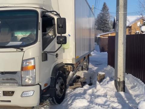 В ночь на 5 февраля около 2 часов в посёлке Пивовариха Иркутского района произошёл инцидент с участием грузового автомобиля JAC: водитель не справился с управлением и съехал в кювет, полностью застряв в глубоком снегу.