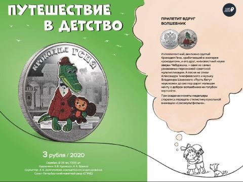 Монеты посвящены героям народных сказок и мультфильмов, среди которых можно увидеть Крокодила Гену и его друга Чебурашку, которые являются знаковыми персонажами советской анимации.