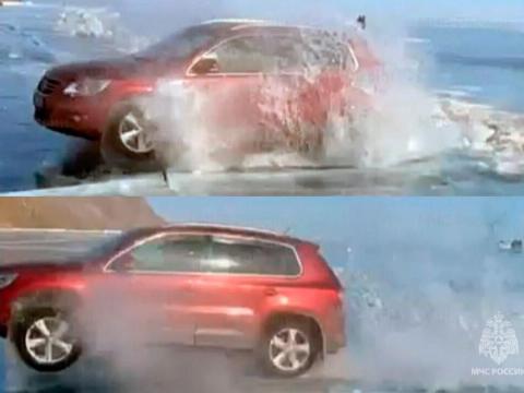Сотрудники Центра ГИМС МЧС России по Иркутской области обнаружили в социальных сетях шокирующее видео, на котором водитель легковой иномарки на скорости перепрыгивает через ледовый нажим с торосами на акватории Байкала.