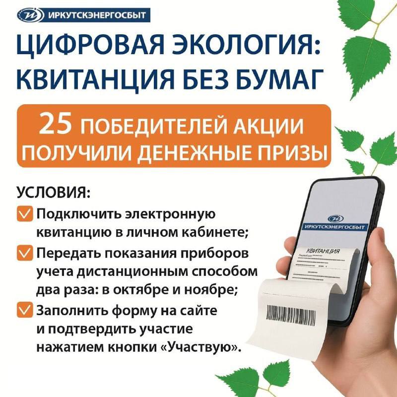 Акция стартовала осенью и была призвана мотивировать жителей Иркутской области переходить на современные, удобные и экологичные способы взаимодействия с компанией. Для участия и победы необходимо было выполнить три простых шага: