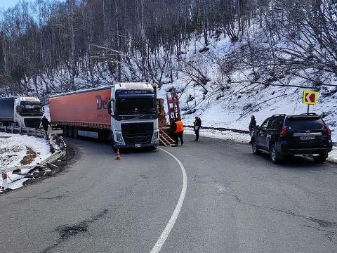 Вблизи поселка Утулик Слюдянского района Иркутской области на федеральной трассе Р-258 «Байкал» на крутом повороте не смогли разъехаться два большегруза.