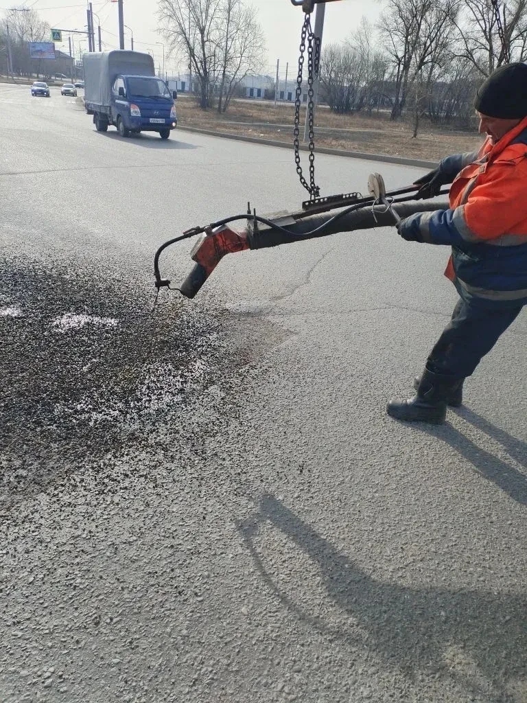 Также, по поручению мэра Руслана Болотова, в Иркутске продолжается ямочный ремонт литым асфальтом. За сутки рециклеры восстановили покрытие на улицах Советской, Лыткина, Розы Люксембург и объездной дороги Ново-Ленино.