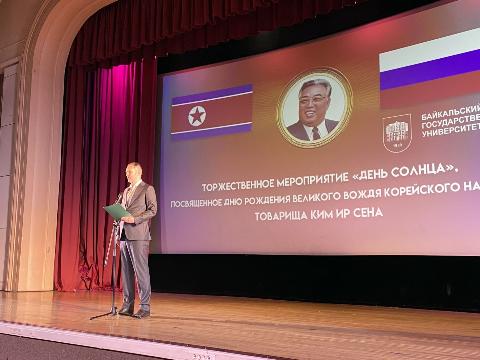 Первый заместитель губернатора Иркутской области Роман Колесов принял участие торжественном мероприятии "День Солнца", организованном общество российско-корейской дружбы "Байкал-Пэктусан" совместно с руководством Байкальского государственного университета. Мероприятие посвящено государственному празднику КНДР "День Солнца", который отмечается 15 апреля - в день рождения основателя этого государства Великого Вождя, Солнца Нации, Железного Всепобеждающего Полководца, Маршала Могучей Республики и т.п. Ким Ир Сена.