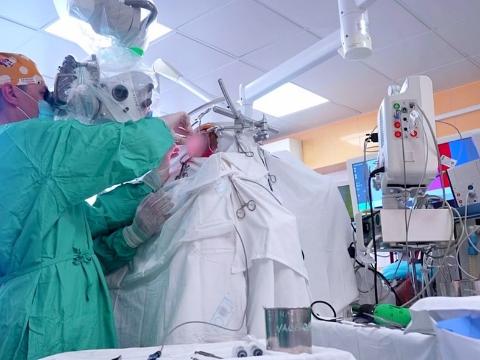 Ключевую роль сыграло современное оборудование, поступившее в больницу незадолго до операции — длинные микрохирургические инструменты и специальная система фиксации головы.
