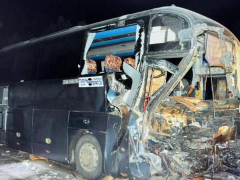 Из-за отсутствия освещения водитель рейсового автобуса, следовавшего из Братска в Тулун, не заметил препятствие на дороге. В результате столкновения автобус вылетел на полосу встречного движения, где лоб в лоб столкнулся с другим большегрузом.