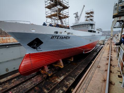 На «Восточной верфи» в Приморье спустили на воду десятое судно в серии краболовов, строящихся на предприятии в рамках государственной программы инвестиционных квот. Новый краболов получил название «Ительмен».