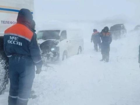 Спасатели вытягивают машины из кюветов, эвакуируют людей в пункты временного размещения, взаимодействуют с экстренными и дорожными службами и с органами местного самоуправления. В ликвидации последствий затора задействованы 56 человек и 13 единиц техники. В ПВР доставлены 253 человека, среди них 28 - несовершеннолетние.