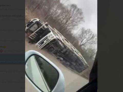 Недалеко от Уссурийска перевернулся грузовик, который перевозил автомобили, сообщает "МК".
