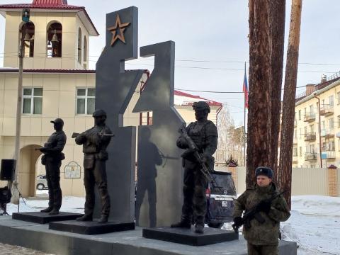 В Братске во вторник, 24 февраля, состоялось торжественное открытие скульптурной композиции, посвященной воинам - героям спецоперации. Ее разместили в сквере у Храма во имя святителя Иннокентия, митрополита Московского. Участие в митинге приняли мэр Александр Дубровин, председатель городского Совета ветеранов Алексей Побойко, участник СВО, протоиерей Андрей Дорогобид, ветераны СВО, родственники бойцов, жители Падунского района и актер Дмитрий Дюжев. Об этом сообщили в пресс-службе городской администрации.