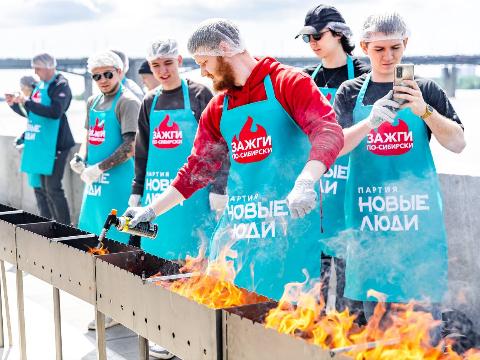 В Новосибирске активисты партии «Новые люди» организовали праздничный фестиваль, во время которого был приготовлен (и съеден) огромный шашлык. Для этого в воскресенье, 25 мая, на Михайловской набережной выстроили в ряд мангалы и начали жарить мясо.
