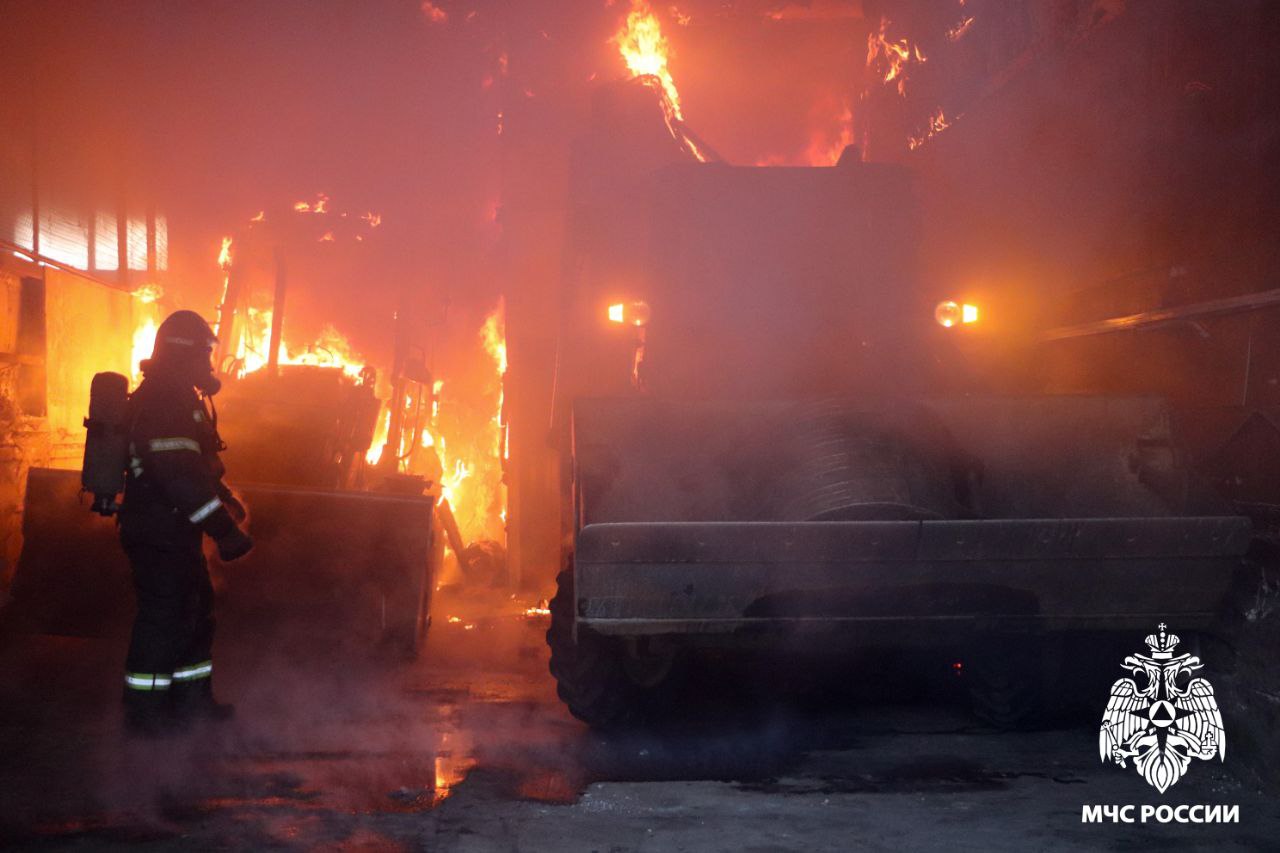 К моменту прибытия первого подразделения пожарных из здания валил густой черный дым, огнем были охвачены емкости с легковоспламеняющейся жидкостью. В результате пожара пламя уничтожило внутри складских боксов заднюю стену на всей площади, частично обрушилось потолочное перекрытие, сгорели два легковых автомобиля, грузовик, автомобильный прицеп и трактор. Также загорелось содержимое двух емкостей, они разгерметизировались, и дизельное топливо разлилось.