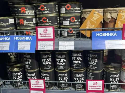 На одной из крупнейших торговых площадок Рунета появилась в продаже тушенка из Забайкальского края. Она пополнила ассортимент продукции, представленной на региональной витрине маркетплейса "Вайлдберриз". Речь идет о тушенке из конины под названием "Наше всё". За четыре банки тушенки продавец просит 1450 рублей.