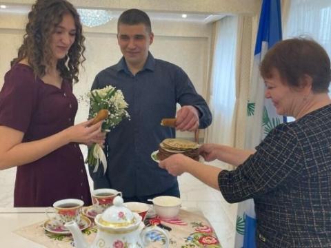 В честь Масленицы в ЗАГСе Тулуна молодожёнов угощают блинами. Также каждой паре дарят традиционный символ праздника — куклу-Масленицу. Об этом сообщает пресс-служба ЗАГСа Иркутской области.