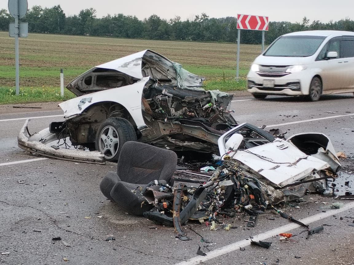 Очередная дорожная трагедия случилась на 1781 километре федеральной трассы. По данным Госавтоинспекции, водитель автомобиля "Тойота Камри" выехал на полосу встречного движения, где седан врезался в кроссовер "Мицубиси Эклипс".